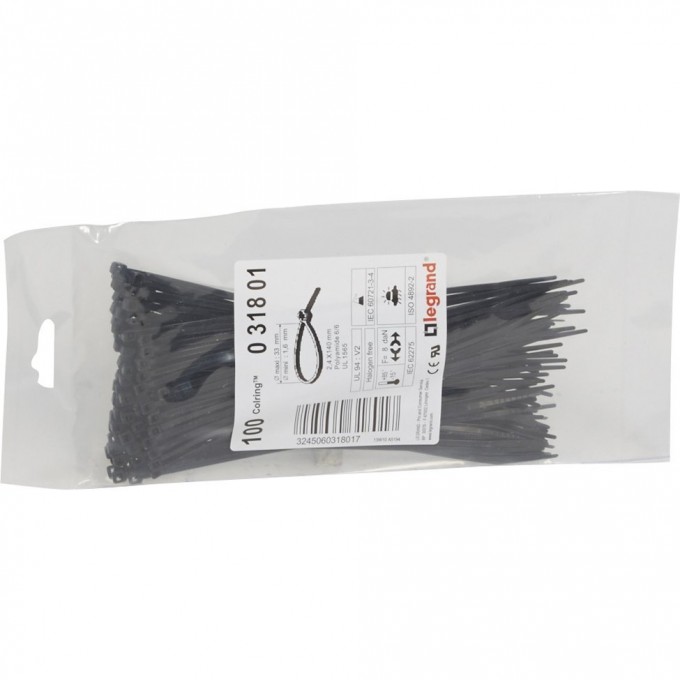 Монтажный хомут LEGRAND Colring ширина 2.4 мм длина 140 мм пакет 100 шт чёрный 031801