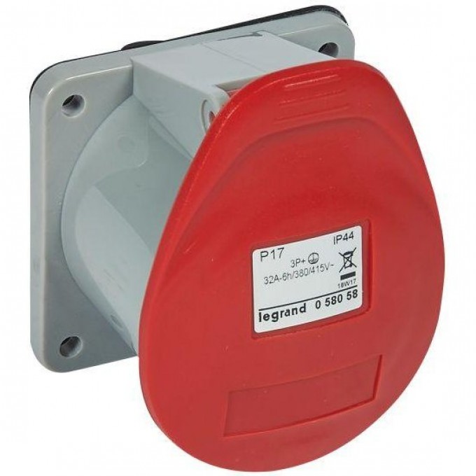 Встраиваемая прямая розетка LEGRAND P17 Tempra Pro с уменьшенным фланцем IP 44 380/415 В 32 A 3К+З 058058